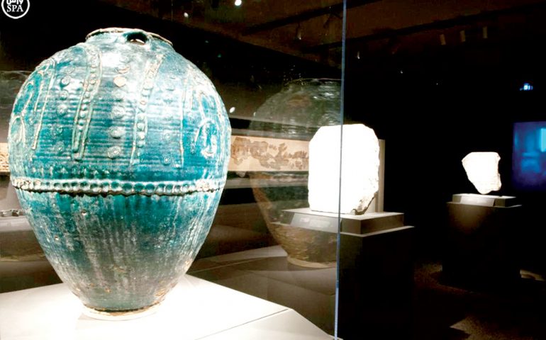 ويحوي المعرض (466) قطعة أثرية نادرة تعرّف بالبعد الحضاري للمملكة وإرثها الثقافي، وما شهدته أرضها من تداول حضاري عبر الحقب التاريخية المختلفة.
