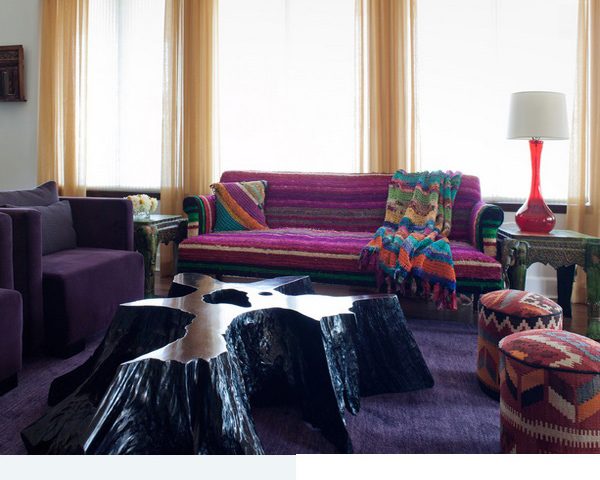 • طاولة بجذوع وأغصان الشجر؛ تصميم مثير للاهتمام ، بطريقة مزج الأساليب والانماط والنقوش والخامات والألوان، تجذب الأنظار، بالتأكيد التصميم مميز ومبتكر.