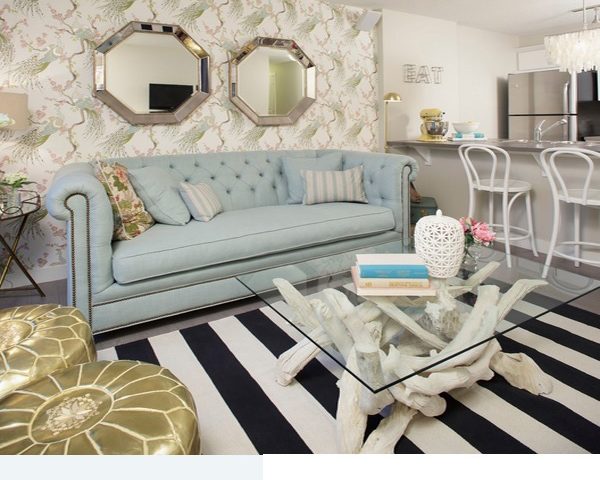 • طاولة القهوة الحلزونية بلون غامق؛ تظهر التباين في الألوان، وتجعل ألوان غرفة الجلوس الهادئة تشع أكثر.