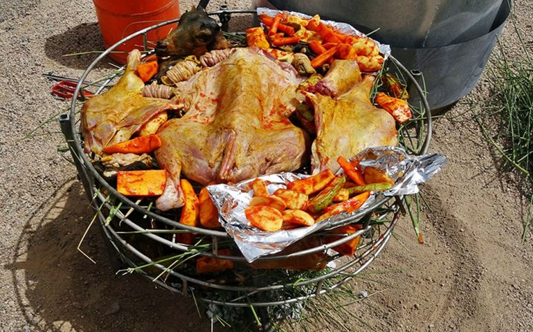 وبعدها يوضع الرمل أو التراب فوق الغطاء بما يتوازى مع سطح الأرض وعندها فإن الإغلاق المحكم للبرميل يمنع دخول الهواء مما يتسبب في انطفاء النار وبقاء الحرارة الشديدة، فينضج الطعام عن طريق الحرارة العالية. ويجب التأكد بأنه لا يوجد أي متنفس لدخول الهواء حتى لا يساعد على اشتعال النار واحتراق الطعام.