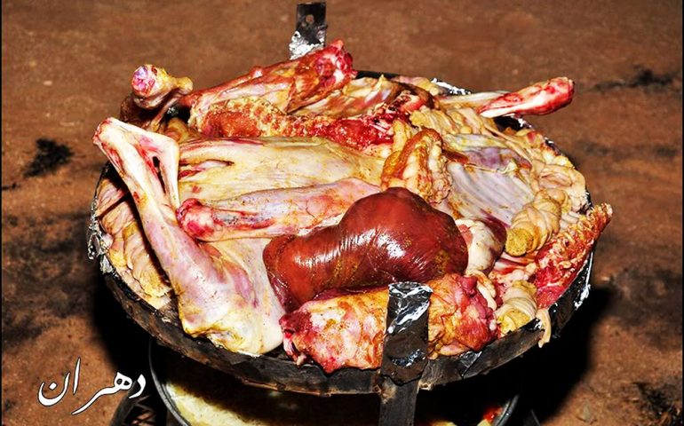 ويتم تعليق اللحم على أسياخ حديدية دائرية الشكل تسمى “المشخل”، لكي تتناسب مع الشكل الأسطواني للتنور، ومن ثم يتم وضعها به بعد أن يكون الحطب قد أشعل بداخله مسبقاً، ثم يغطى التنور وهو أسطوانة من الحديد على شكل حفرة يصل عمقها لقرابة المترين، وتغطى بغطاء معدني محكم حتى تتم عملية “التطييب”.