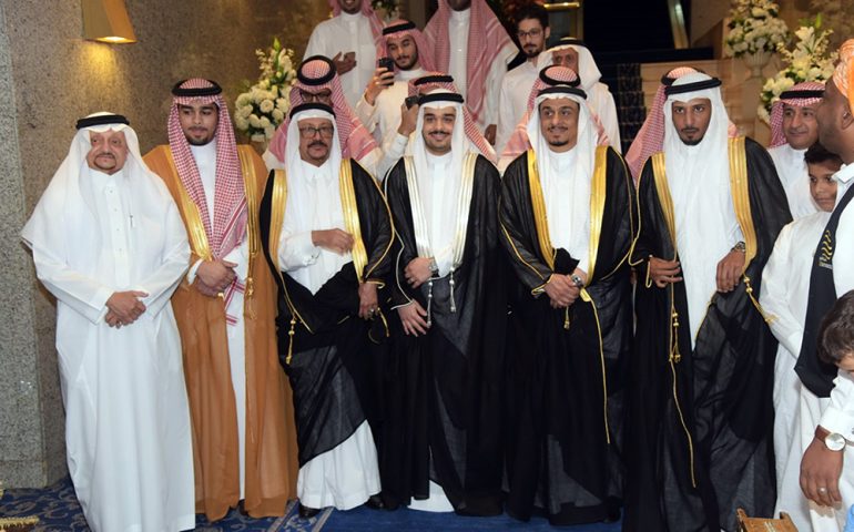 وقد شارك الجميع والد العروس والعريس الأهازيج والمجسات والألعاب الشعبية الحجازية، متمنين للعروسين حياة سعيدة.